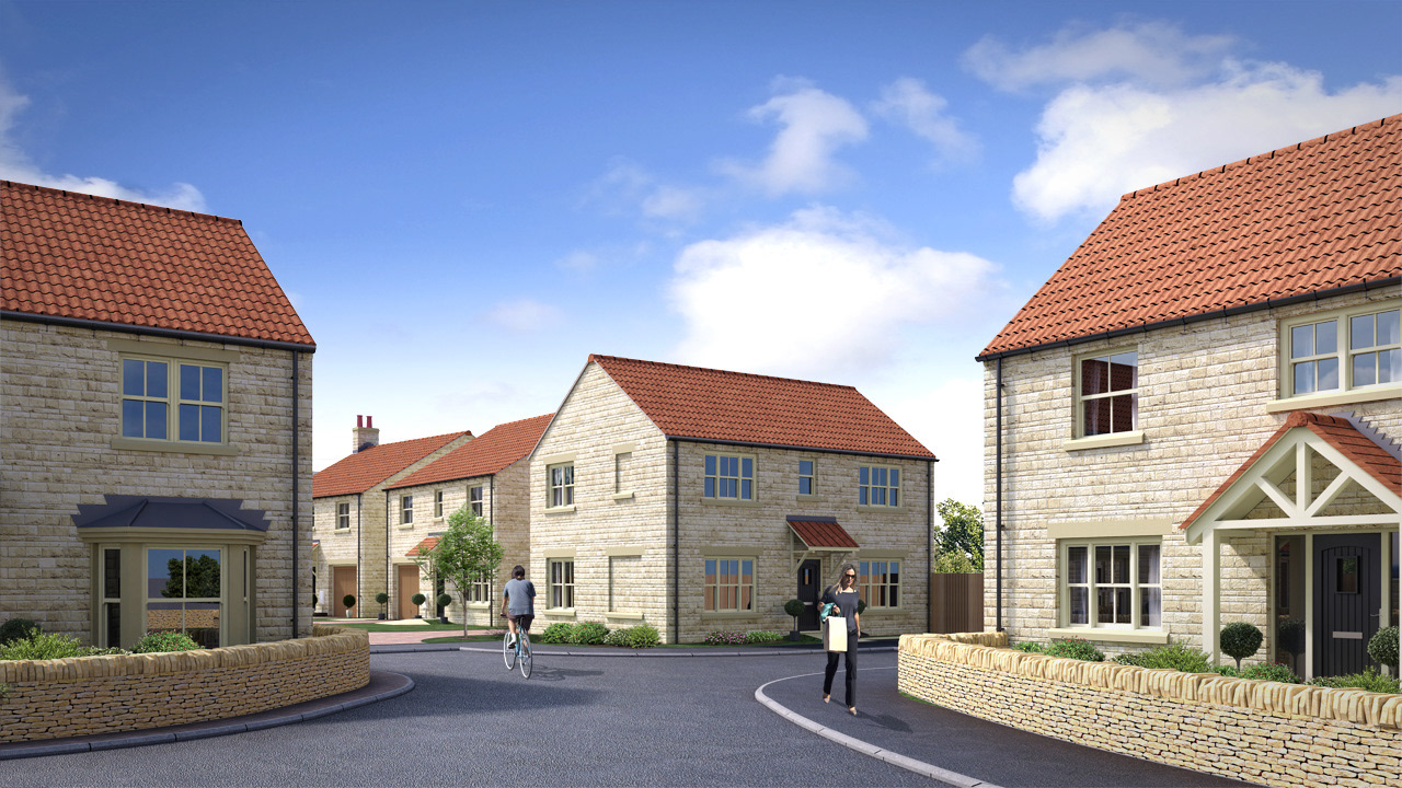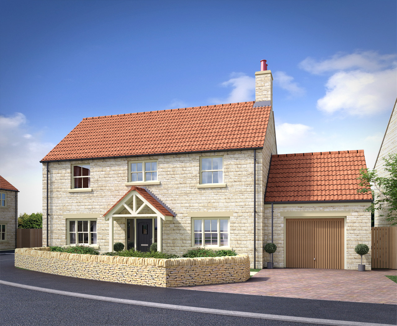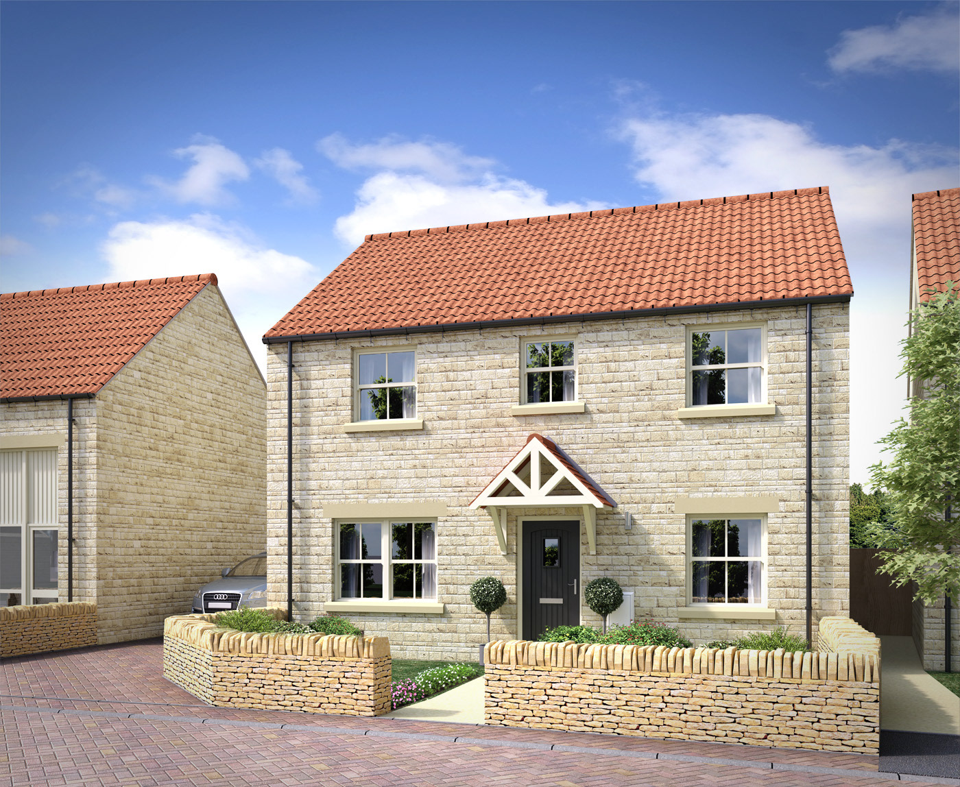 Full set of exterior marketing images produced for every plot and street scenes for new developemnt of mainly detached luxury homes in North Yorkshire.